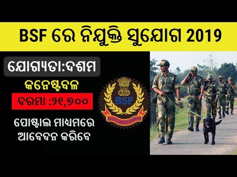 BSF ରେ ନିଯୁକ୍ତି ସୁଯୋଗ 2019 | Qualification Matric Pass | Salary Rs. 21,700