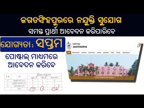 Job in Jagatsinghpur District | Qualification 7th Pass | Apply offline